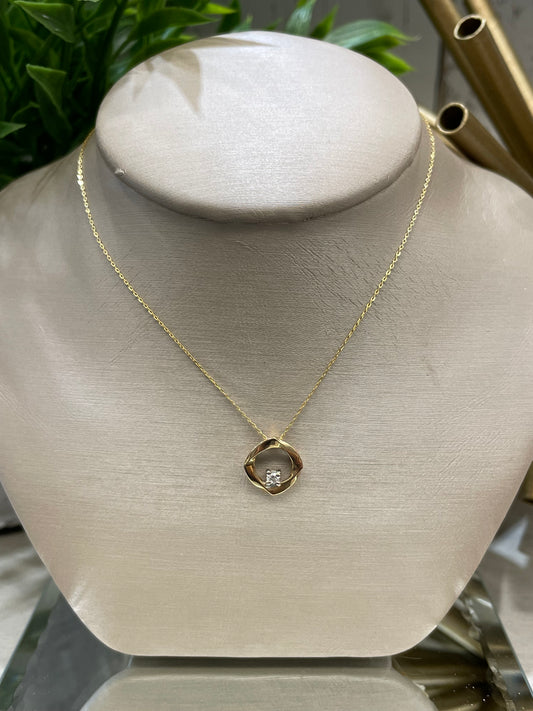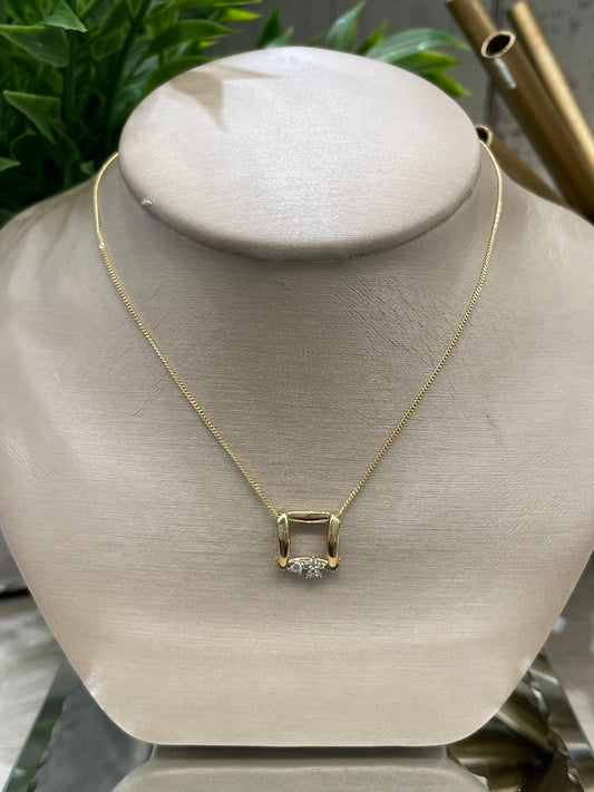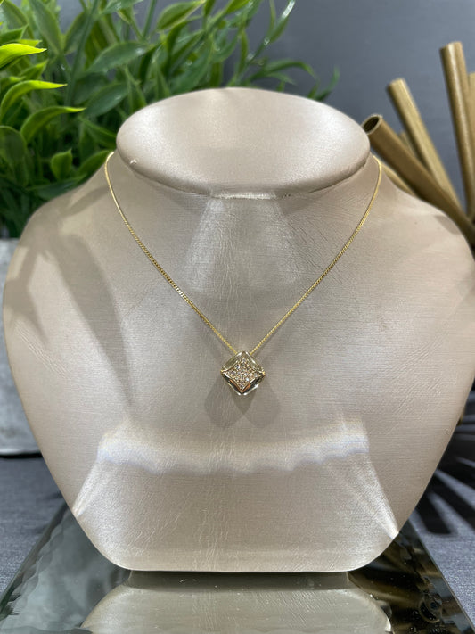 10k Yellow Gold .025ctw Diamond Square Pendant