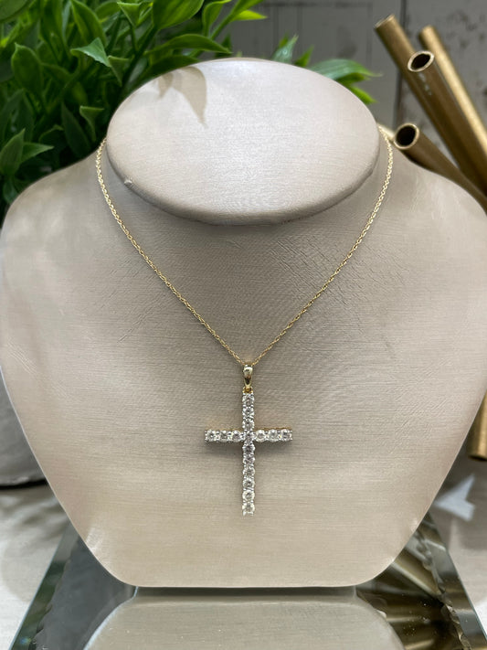 10k Yellow Gold 1.00ctw Diamond Cross Pendant