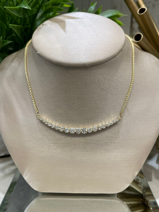 10k Yellow Gold 1.05ctw Diamond Curved Bar Necklace