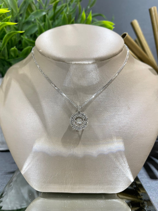 14k White Gold 0.17ct Diamond Round Double Halo Twinkle Pendant