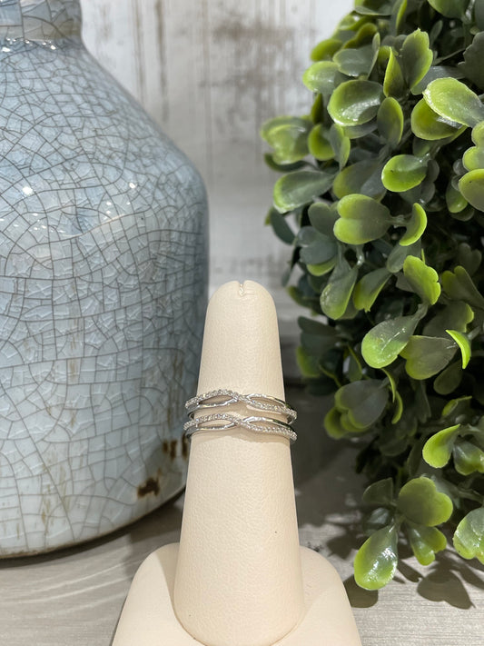 14k White Gold 0.20ctw Diamond Double Crossover Band