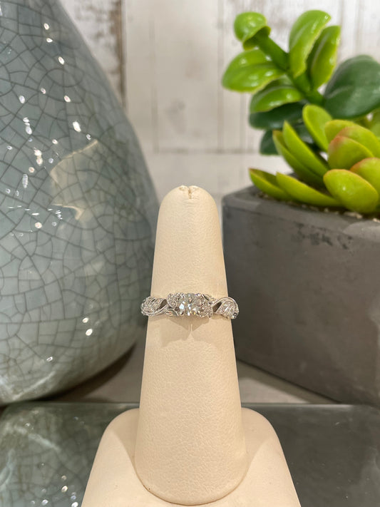 14k White Gold 0.70ct Diamond Leaf Accent Noam Carver Engagement Ring