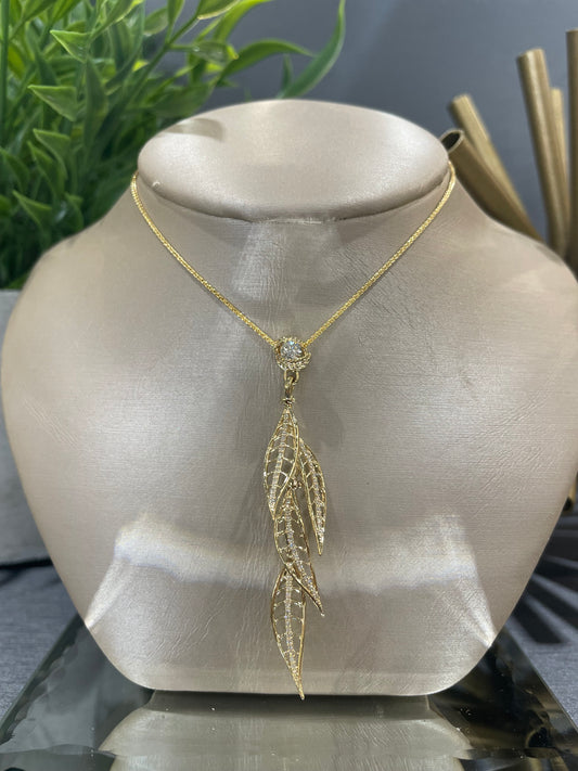 14k Yellow Gold 0.18ct Diamond Four Leaf Dangling Pendant