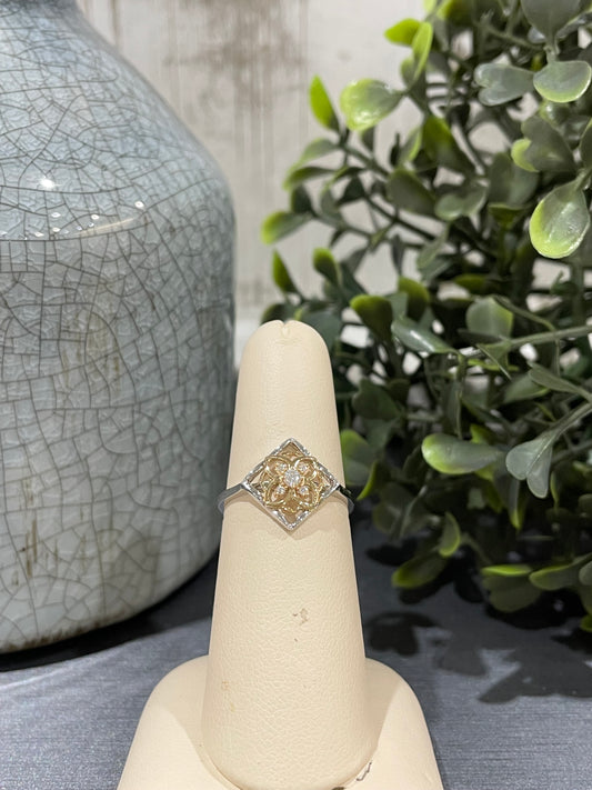 10k Two-Tone .025ctw Diamond Round Design Ring