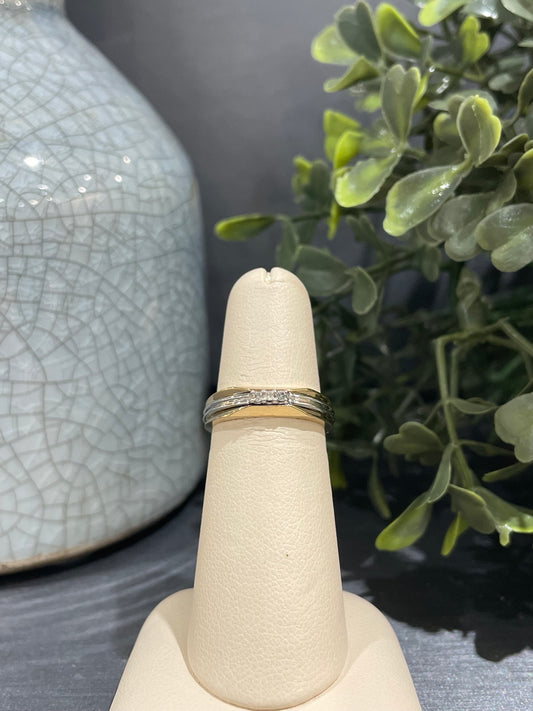 10k Two-Tone 0.05ctw Diamond Three Stone Wedding Band