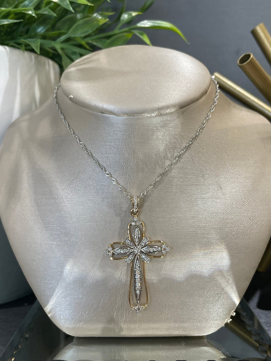 10k Two-Tone 0.31ctw Diamond Fancy Cross Pendant