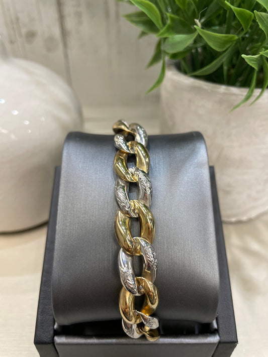 10k Two-Tone Diamond Cut Curb Link Bracelet