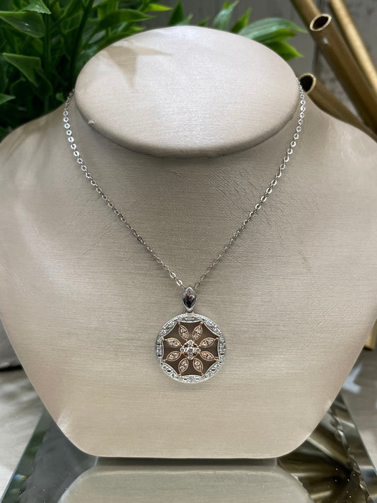 10k Two-Tone 0.30ctw Diamond Flower Disc Pendant