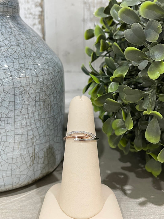 10k Two-Tone 0.06ctw Diamond Overlap Design Ring