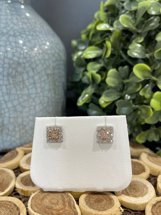10k Two-Tone 0.34ctw Diamond Square Stud Earrings