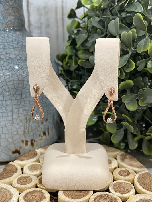 10k Rose Gold 0.07ctw Diamond Teardrop Dangle Stud Earrings