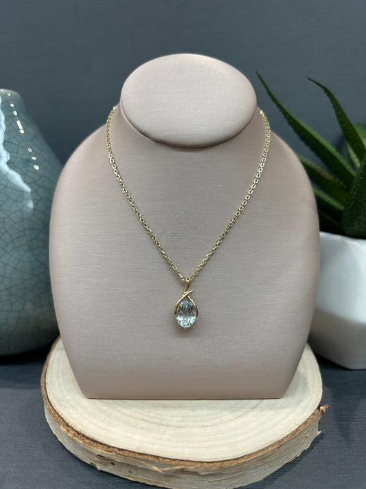 14k Yellow Gold Oval Aquamarine Pressure Set Pendant