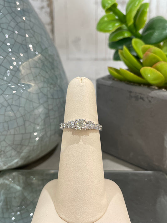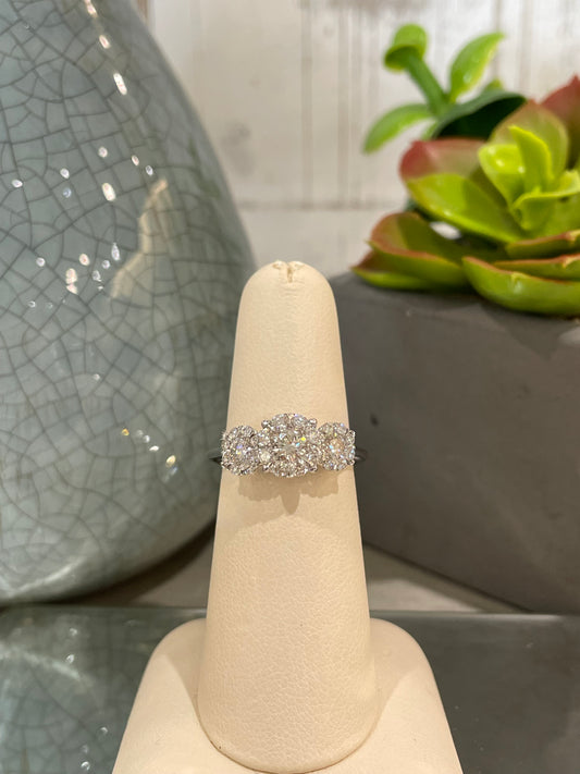10k White Gold 1.10ct Diamond Three Stone Cluster Engagement Ring